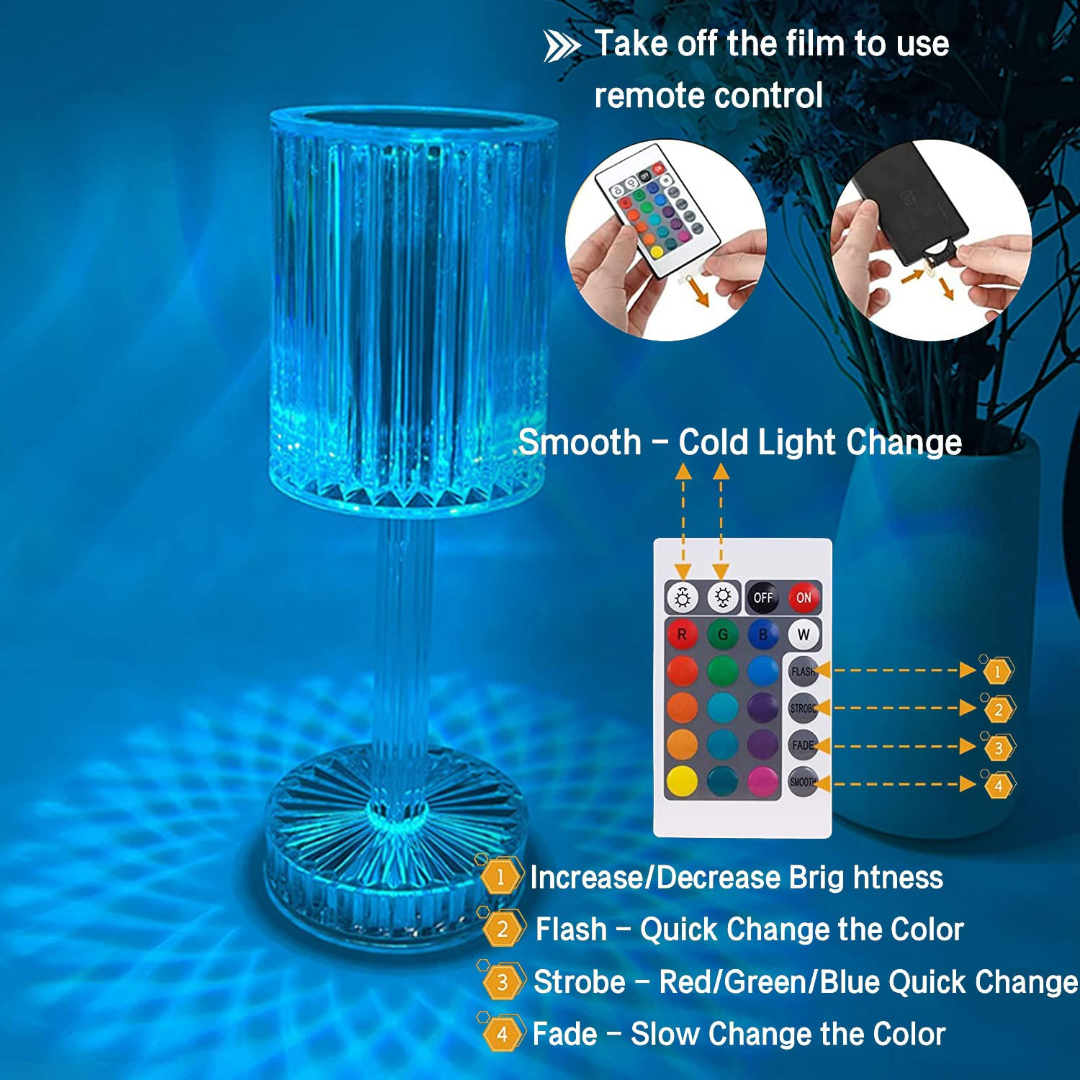 Adjustable brightness: This crystal diamond lamp can adjust 6 levels of brightness via the remote control and offers 4 dynamic modes (flash/strobe/fade/smooth) to choose from, which provide a comfortable and romantic atmosphere.