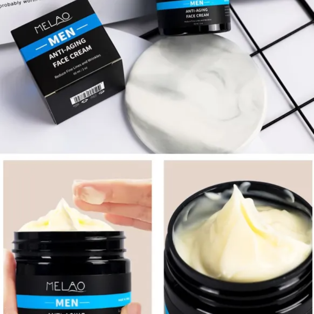 Melao Men Anti-Aging Face Cream is men's cream with the powerful formula with Hyaluronic Acid and Vitamins A & E helps to keep your skin hydrated all day long, and reduce the depth of wrinkles and fine lines.