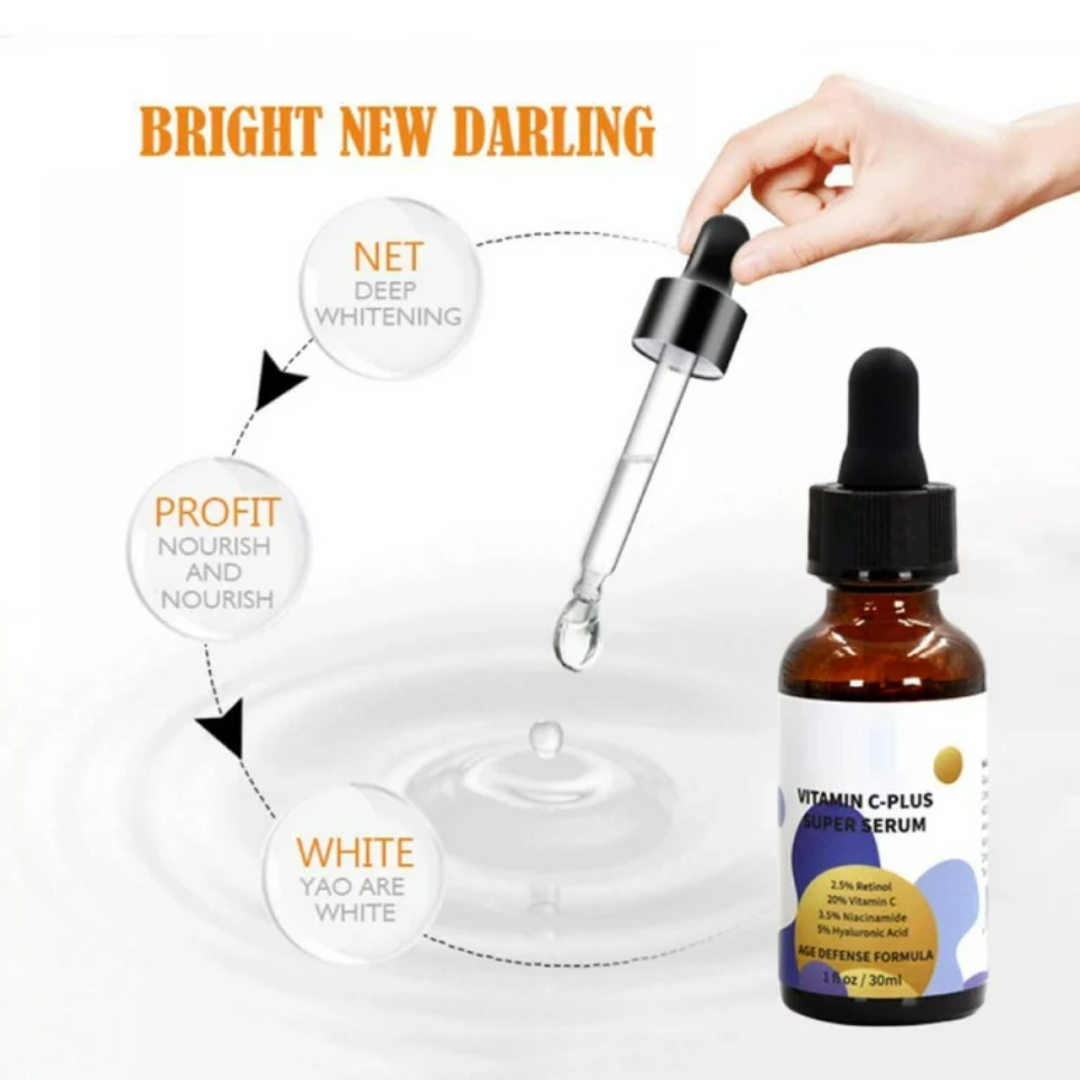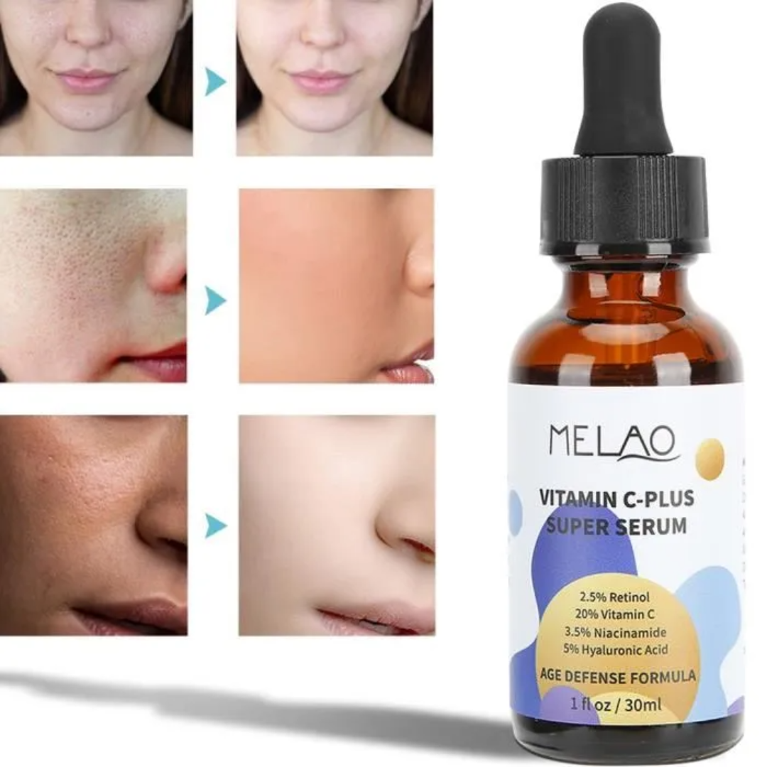 Melao Vitamin C Plus Super Serum is Advanced Antioxidant Serum . An indispensable nutrient for collagen production, vitamin C synergistically blends with Botanical Hyaluronic Acid and Vitamin E in this advanced formula designed to target the most common signs of aging including brightness, firmness, fine lines, wrinkles, dark spots & sun spots.