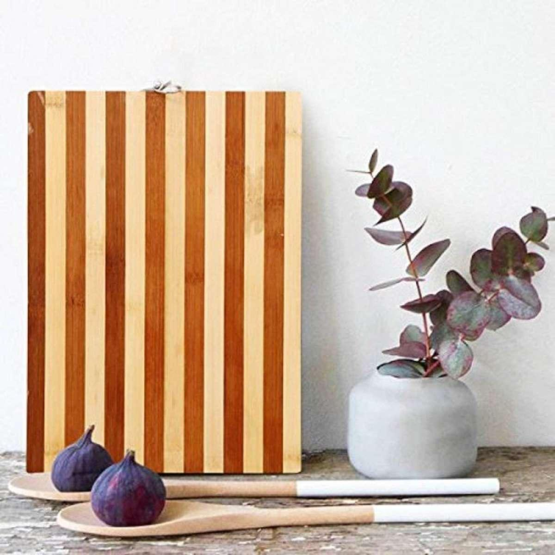 Bamboo cutting boards are the best cutting boards eco friendly utensil gadgets due to their durability and environment friendly. This elegant bamboo cutting board stand up moisture better than wood which helps to retain its shape, and the lightweight build ensures easier handling and maneuvering when you use it. Just place it on a surface and start chopping some colorful peppers, mushrooms or any vegetable as well as meats and fruits.